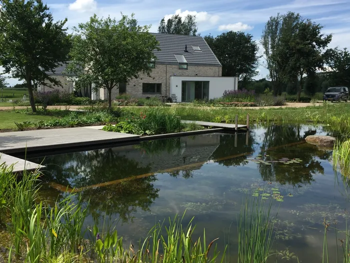 Vanaf 2020 kun je een voorbeeld van het natuurzwembad met zonneboiler en zonnecollectoren zien in de modeltuin in Heerde. Het water wordt hier over het platte dak van het poolhouse gepompt om het water te verwarmen. Wil je meer weten over dit systeem? Maak dan een afspraak voor een bezichtiging, zodat we je alles kunnen uitleggen.